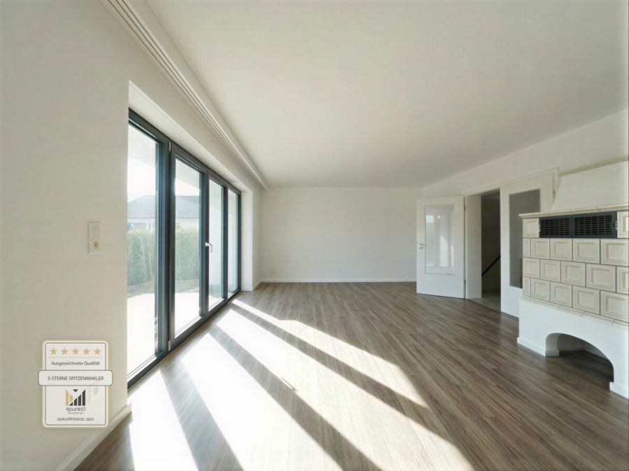 Großzügiges Wohnzimmer, Kachelöfen, direkter Zugang zur Terrasse