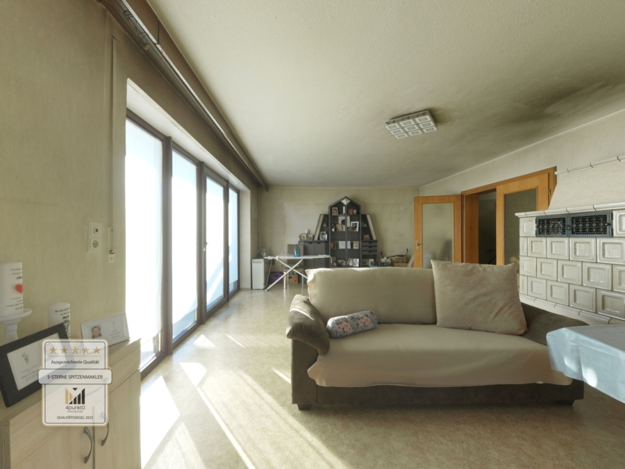 Positiv: Die Bausubstanz wirkt solide, Feuchtigkeit ist nicht erkennbar, die Geschossdecken sind in Beton ausgeführt (kein Fehlboden) – und die Lage ist sehr attraktiv. Die Dachneigung ist zur Installation einer Photovoltaikanlage bestens geeignet.