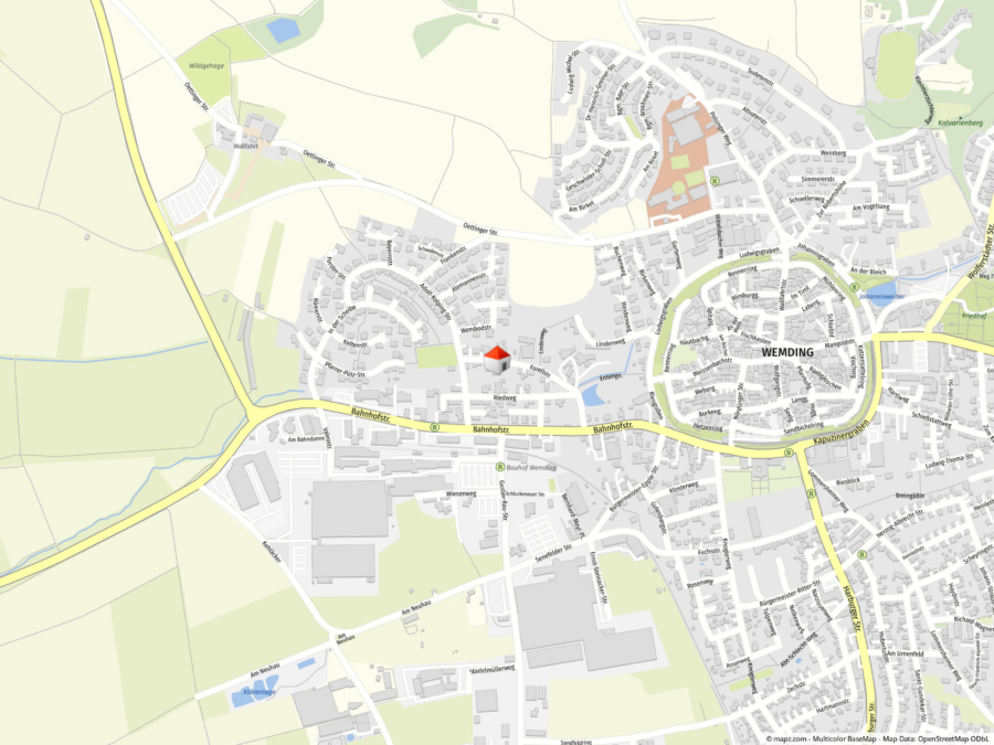 Die Immobilie liegt in einer gefragten Wohngegend von Wemding: ruhig, grün und gleichzeitig zentrumsnah. Die historische Altstadt ist in wenigen Minuten zu Fuß erreichbar – genauso wie Supermärkte, Bäckereien, Ärzte, Apotheken und zahlreiche weitere Geschäfte des täglichen Bedarfs. Ein Kindergarten, ein Bolzplatz, mehrere Spielplätze und zwei Tankstellen befinden sich in direkter Umgebung – praktisch und familienfreundlich.