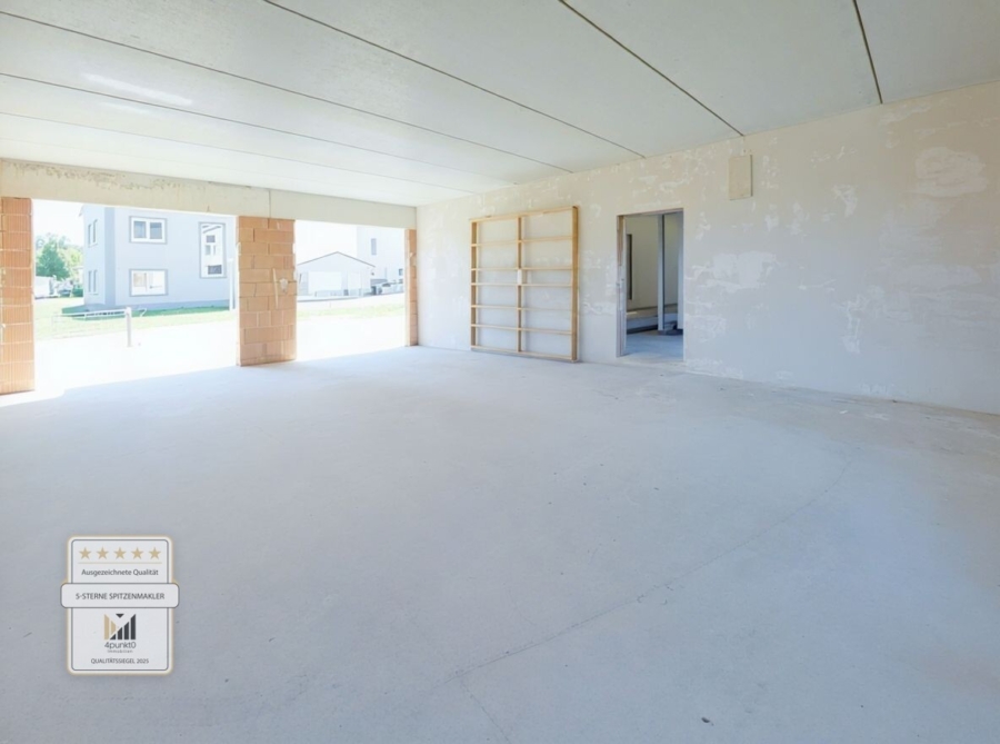 Hinweis zur Garage: Der Außenputz steht noch aus und wird in den kommenden Wochen erledigt; Garagentür und -tor müssen vom Käufer übernommen/gestellt werden.