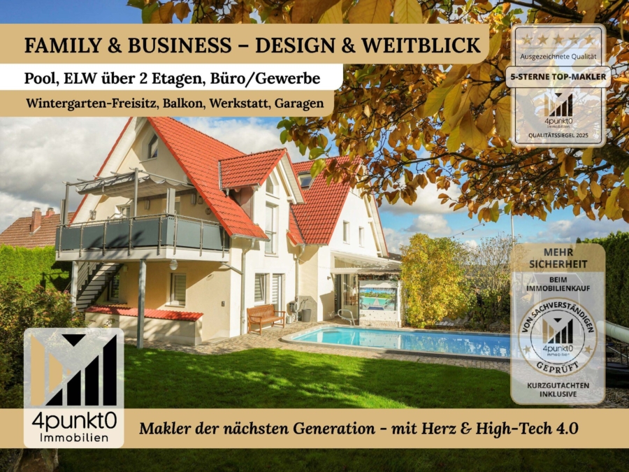 Family & Business – Design & Weitblick: Pool, ELW, Büro/Gewerbe, Wintergarten-Freisitz, Garagen